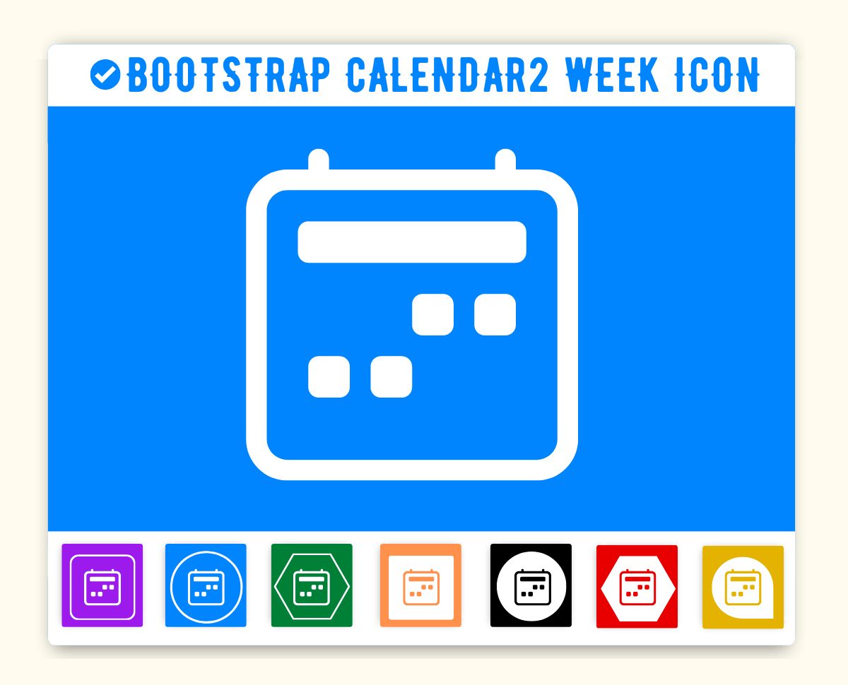 Adding Bootstrap Icon icon HTML Calendar2 week(calendar2-week) in web project is very simple. You need to add the icon class along with bi, it is basically main class and mandatory for icons so do not forget to add this class. You can customize Bootstrap Icon calendar2 week Icon Calendar2 week as per your requirement, suppose that you need to chnage the color of Calendar2 week icon or change the size of size. It is pretty simple to change color of icon Calendar2 week just add style="color:red" it will make font color red. On the same way you can change size of Calendar2 week icon by just adding style="font-size:50px;". Smililarly you can add border color, shadow and other font styles to Calendar2 week. Hope this icon fullfilled your need.