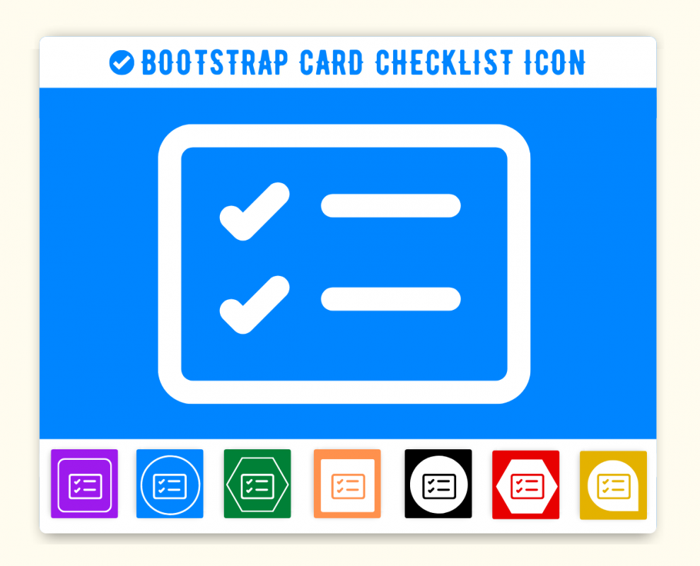 Adding Bootstrap Icon icon HTML Card checklist(card-checklist) in web project is very simple. You need to add the icon class along with bi, it is basically main class and mandatory for icons so do not forget to add this class. You can customize Bootstrap Icon card checklist Icon Card checklist as per your requirement, suppose that you need to chnage the color of Card checklist icon or change the size of size. It is pretty simple to change color of icon Card checklist just add style="color:red" it will make font color red. On the same way you can change size of Card checklist icon by just adding style="font-size:50px;". Smililarly you can add border color, shadow and other font styles to Card checklist. Hope this icon fullfilled your need.