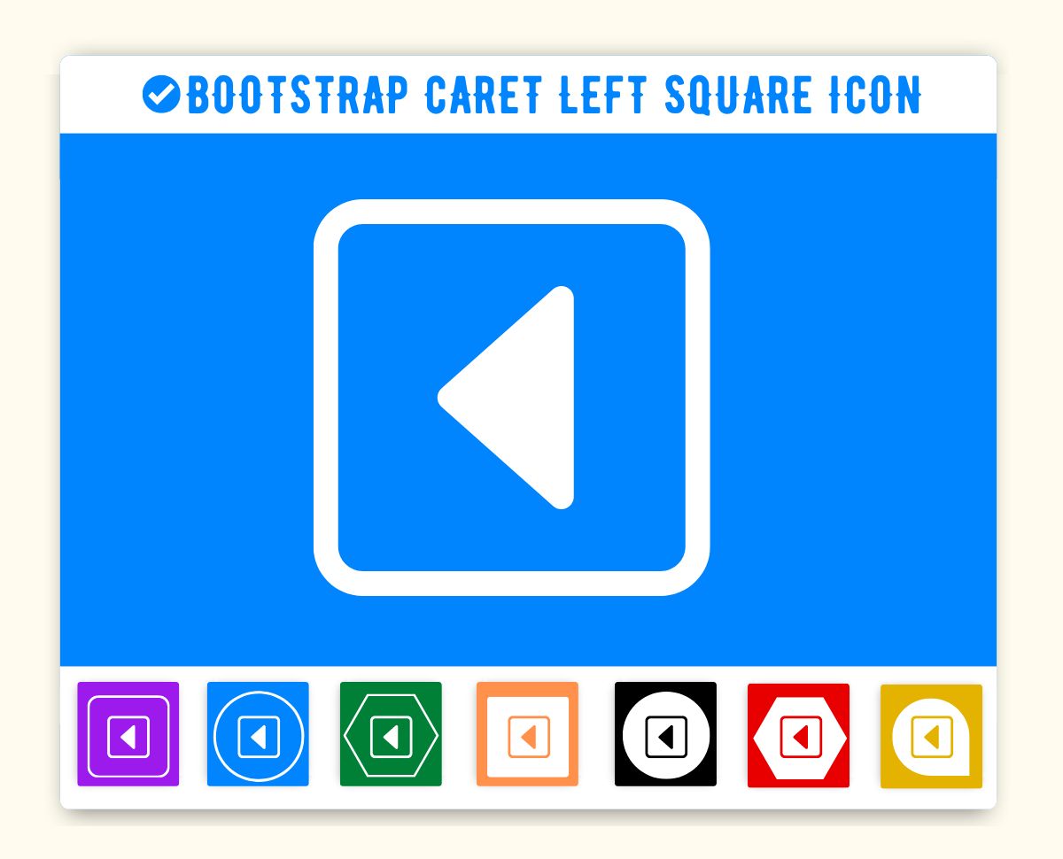 Adding Bootstrap Icon icon HTML Caret left square(caret-left-square) in web project is very simple. You need to add the icon class along with bi, it is basically main class and mandatory for icons so do not forget to add this class. You can customize Bootstrap Icon caret left square Icon Caret left square as per your requirement, suppose that you need to chnage the color of Caret left square icon or change the size of size. It is pretty simple to change color of icon Caret left square just add style="color:red" it will make font color red. On the same way you can change size of Caret left square icon by just adding style="font-size:50px;". Smililarly you can add border color, shadow and other font styles to Caret left square. Hope this icon fullfilled your need.