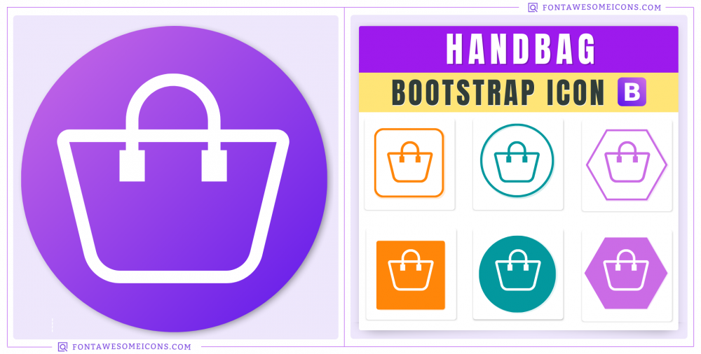 Handbag Icon is given below. You can use this icon on the same way in your project. First make sure you have added Bootstrap Icon library. If this library is added just add the HTML css class handbag to any element to add the icon. Bootstrap handbag Icon can be resized as per your need. You can manage size of icon(handbag) by using font-size css style.