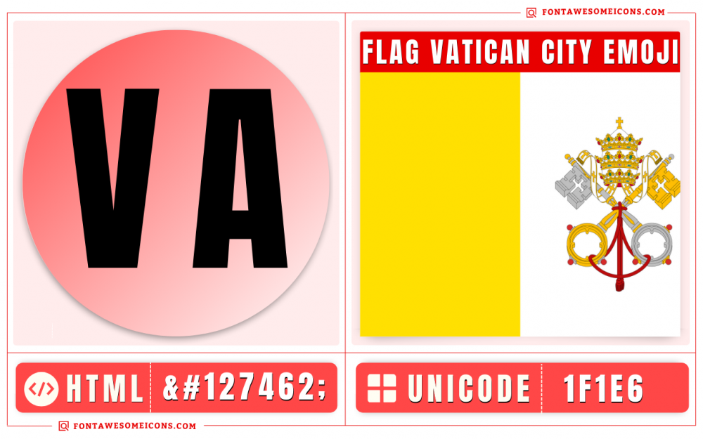 🇻🇦 Symbol Emoji meaning is "Flag Vatican City". Unicode of Flag Vatican City "🇻🇦" Emoji is 1f1fb-1f1e6 and HTML entity code is 🇻🇦. Flag Vatican City Emoji text copy paste work well with all platforms like - WhatsApp, Facebook, Google, Mail, Snapchat, Discord, Instagram, and other. This 🇻🇦 Emoji comes under the Flags (country-flag) category. The order of the Flag Vatican City emoji is "1755". Check more details of Flag Vatican City Emoji meaning by boy and girl, Unicode, and HTML Text Copy and Paste from below.