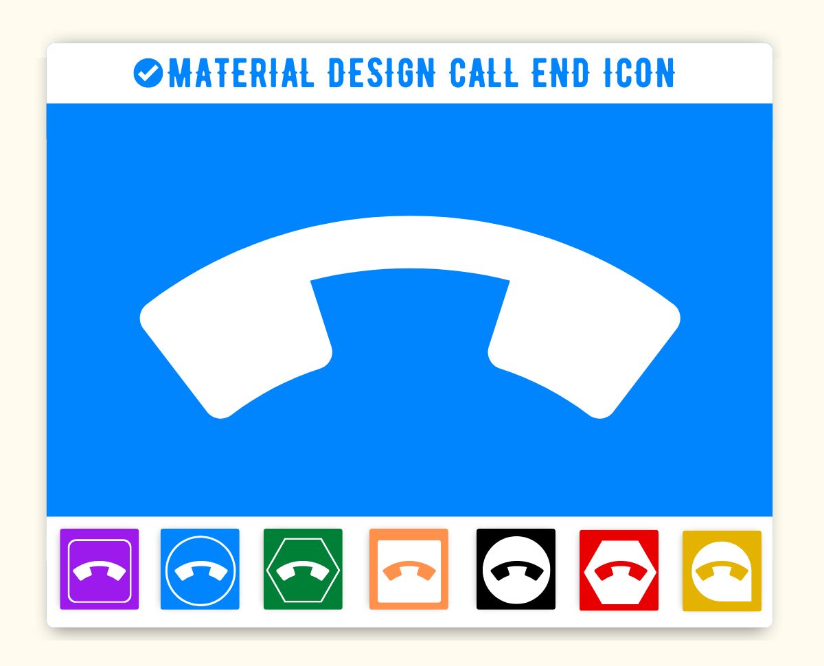 Call End Icon is given below. You can use this icon on the same way in your project. First make sure you have added Material Icon library. If this library is added just add the HTML css class call_end to any element to add the icon. Material Design Call End Icon can be resized as per your need. You can manage size of icon(call_end) by using font-size css style.