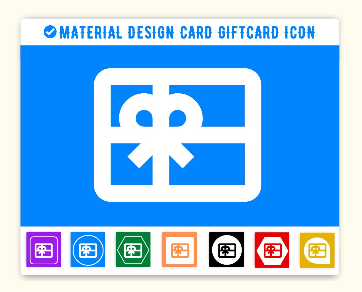 Adding Material Icon icon HTML Card Giftcard(card_giftcard) in web project is very simple. You need to add the icon class along with material-icons, it is basically main class and mandatory for icons so do not forget to add this class. You can customize Material Icon Card Giftcard Icon Card Giftcard as per your requirement, suppose that you need to chnage the color of Card Giftcard icon or change the size of size. It is pretty simple to change color of icon Card Giftcard just add style="color:red" it will make font color red. On the same way you can change size of Card Giftcard icon by just adding style="font-size:50px;". Smililarly you can add border color, shadow and other font styles to Card Giftcard. Hope this icon fullfilled your need. Thanks for visiting us.