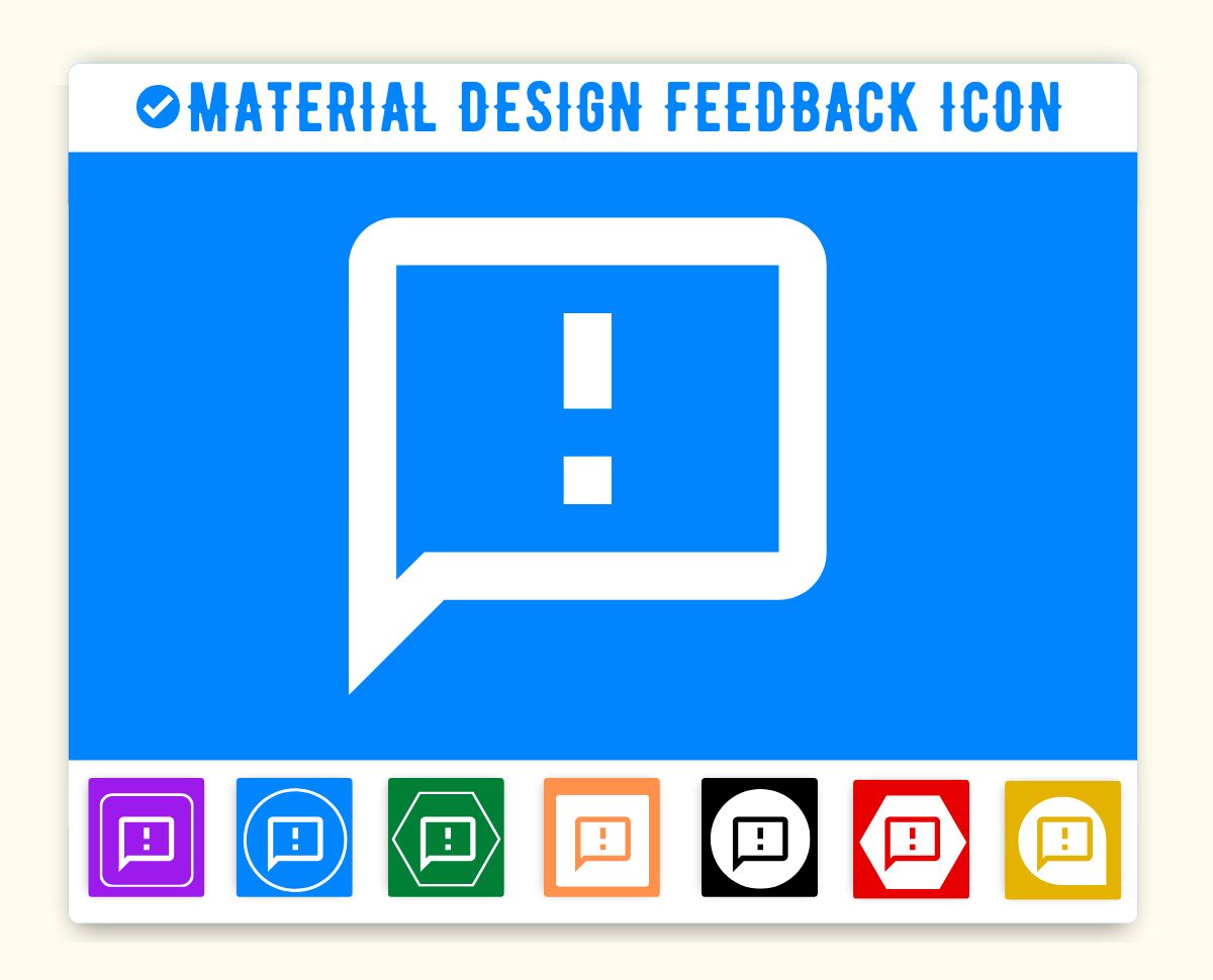 !, alert, announcement, attention, bubble, caution, chat, comment, communicate, danger, error, exclamation, feedback, important, mark, message, notification, speech, symbol, warning,Vuetify Feedback Icon (Vue Js), Material Ui Feedback Icon (React Js), Mat Icon Feedback (Angular Material)