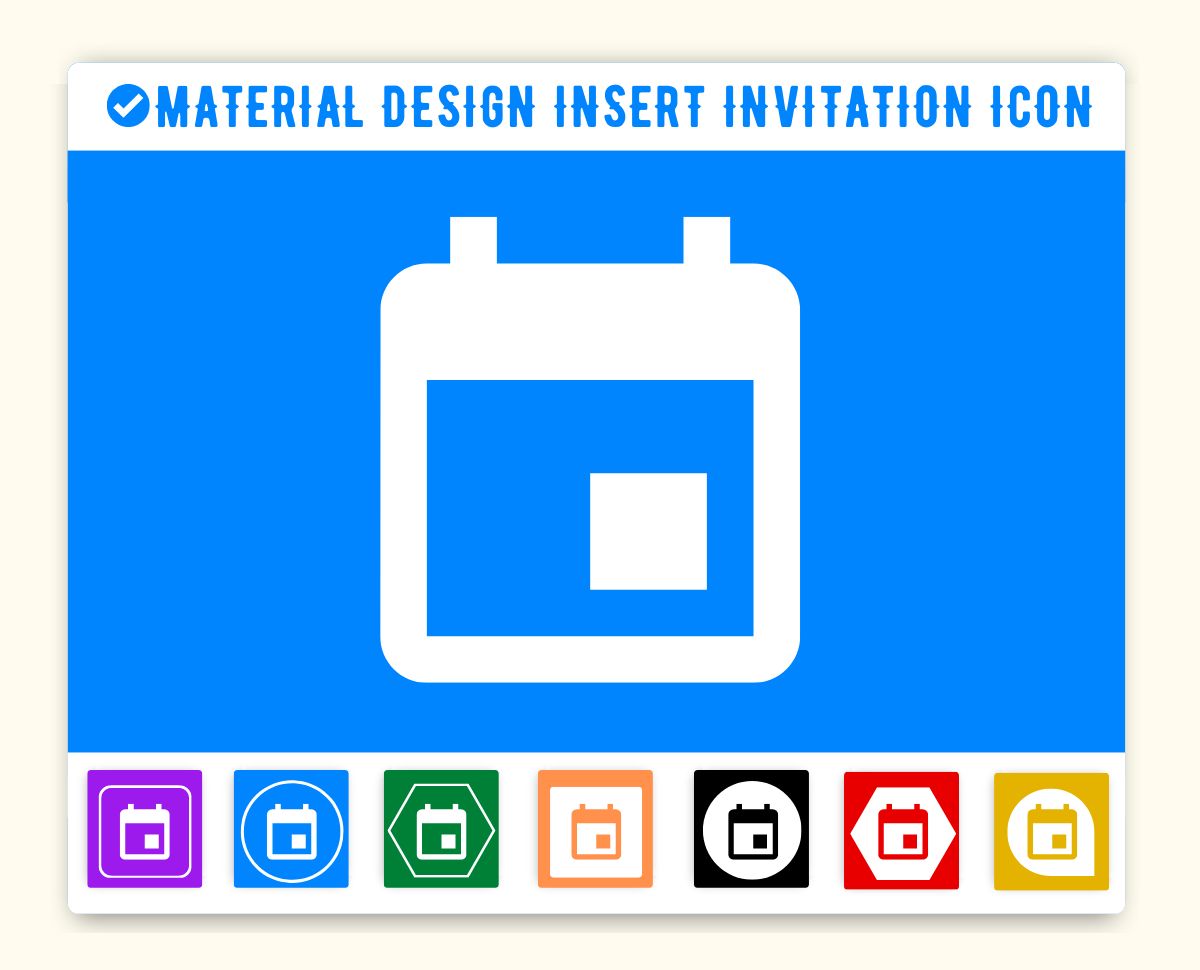 Insert Invitation Icon is given below. You can use this icon on the same way in your project. First make sure you have added Material Icon library. If this library is added just add the HTML css class insert_invitation to any element to add the icon. Material Design Insert Invitation Icon can be resized as per your need. You can manage size of icon(insert_invitation) by using font-size css style.