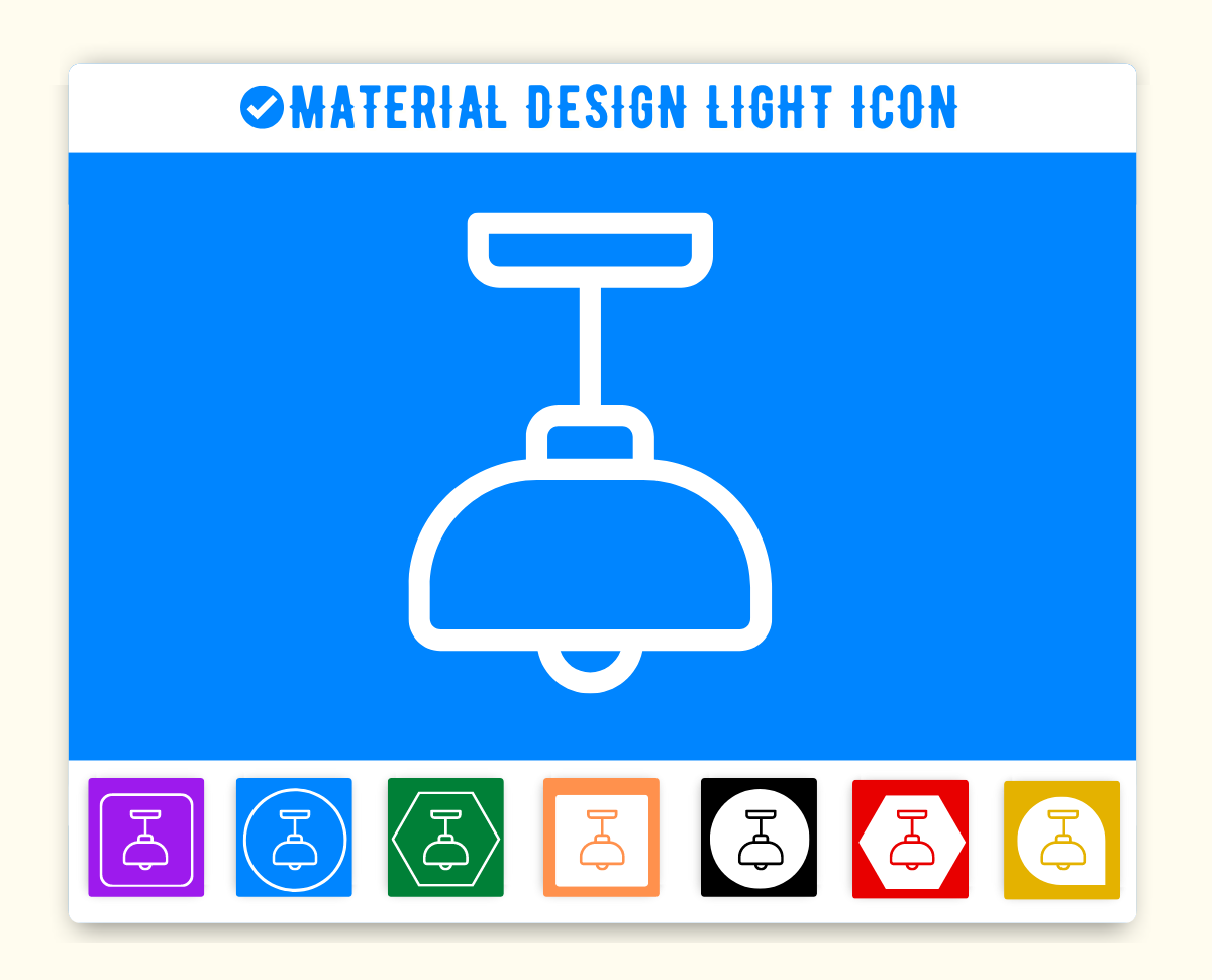 Light Icon is given below. You can use this icon on the same way in your project. First make sure you have added Material Icon library. If this library is added just add the HTML css class light to any element to add the icon. Material Design Light Icon can be resized as per your need. You can manage size of icon(light) by using font-size css style.