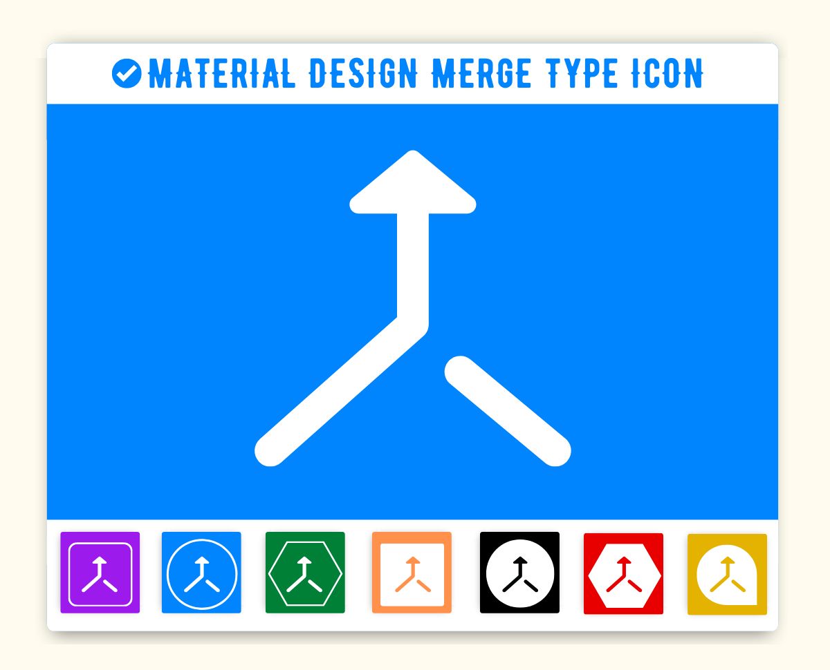 Merge Type Icon is given below. You can use this icon on the same way in your project. First make sure you have added Material Icon library. If this library is added just add the HTML css class merge_type to any element to add the icon. Material Design Merge Type Icon can be resized as per your need. You can manage size of icon(merge_type) by using font-size css style.
