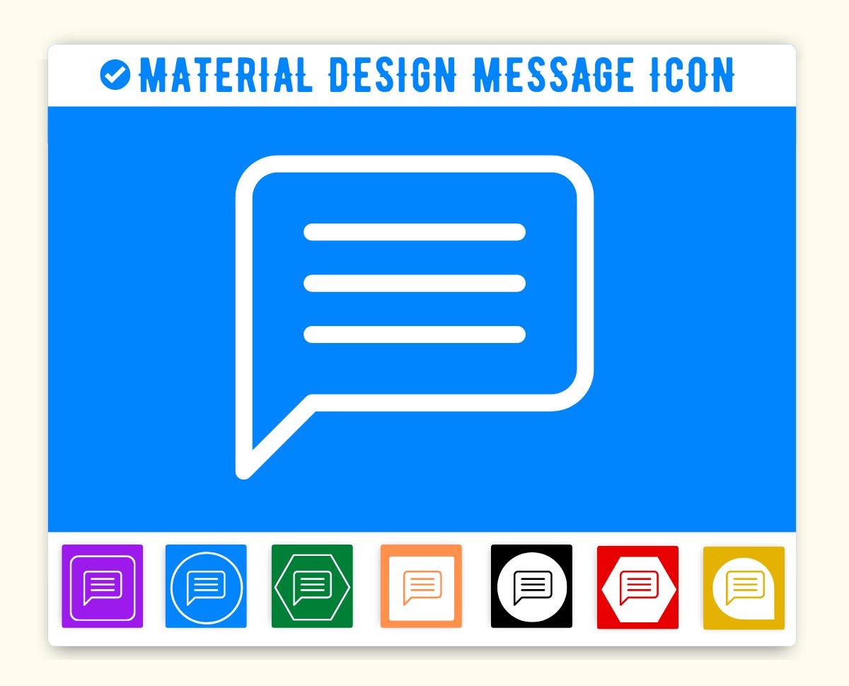 Message Icon is given below. You can use this icon on the same way in your project. First make sure you have added Material Icon library. If this library is added just add the HTML css class message to any element to add the icon. Material Design Message Icon can be resized as per your need. You can manage size of icon(message) by using font-size css style.