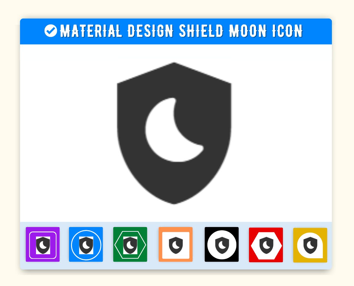 armor ,buffer ,bulwark ,crescent ,half-moon,Vuetify Shield Moon Icon (Vue Js), Material Ui Shield Moon Icon (React Js), Mat Icon Shield Moon (Angular Material)