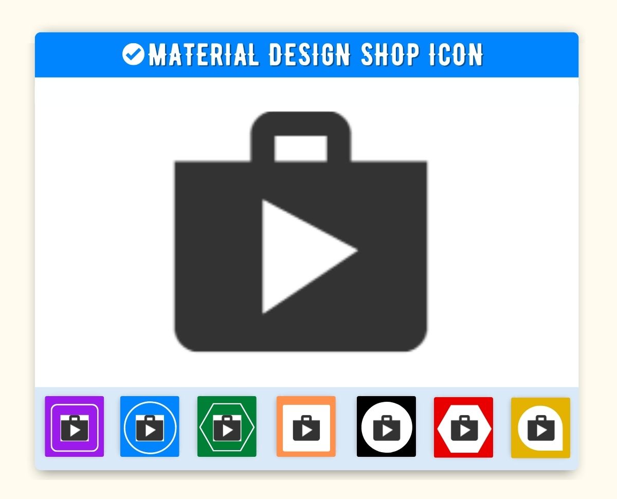 Shop Icon is given below. You can use this icon on the same way in your project. First make sure you have added Material Icon library. If this library is added just add the HTML css class shop to any element to add the icon. Material Design Shop Icon can be resized as per your need. You can manage size of icon(shop) by using font-size css style.