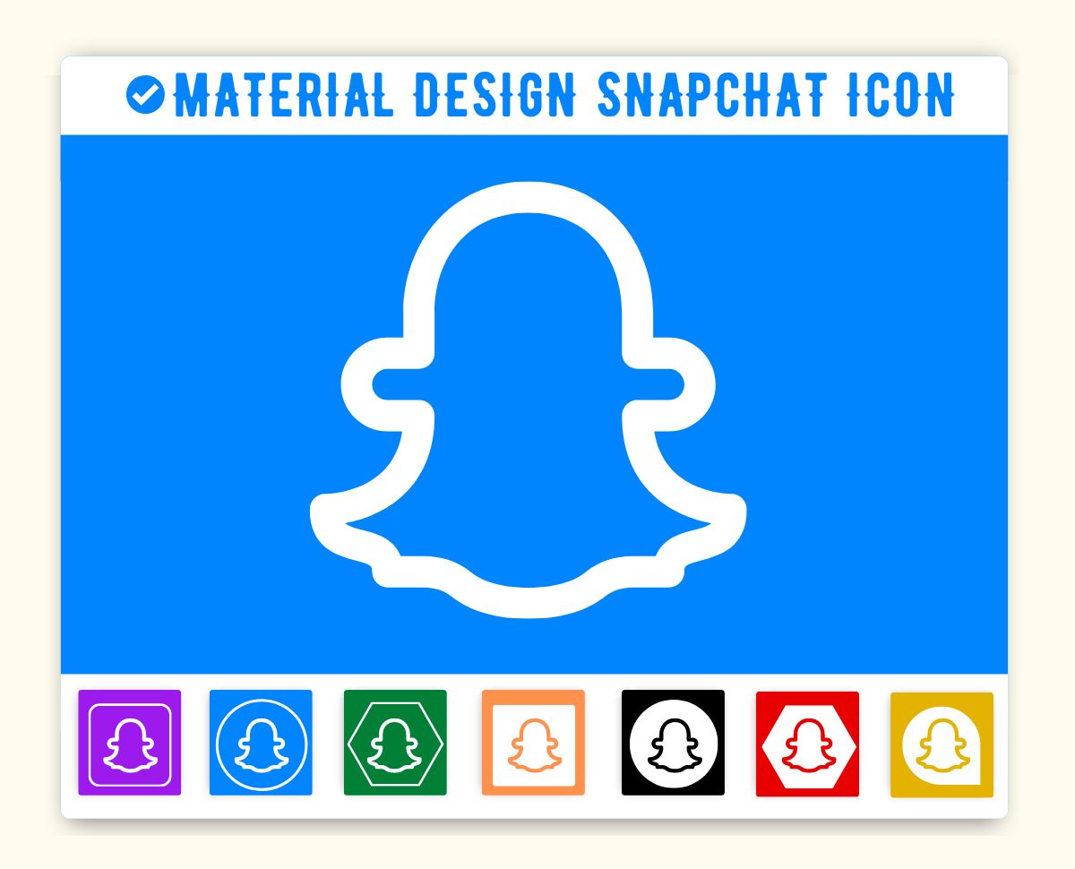 Snapchat Icon is given below. You can use this icon on the same way in your project. First make sure you have added Material Icon library. If this library is added just add the HTML css class snapchat to any element to add the icon. Material Design Snapchat Icon can be resized as per your need. You can manage size of icon(snapchat) by using font-size css style.