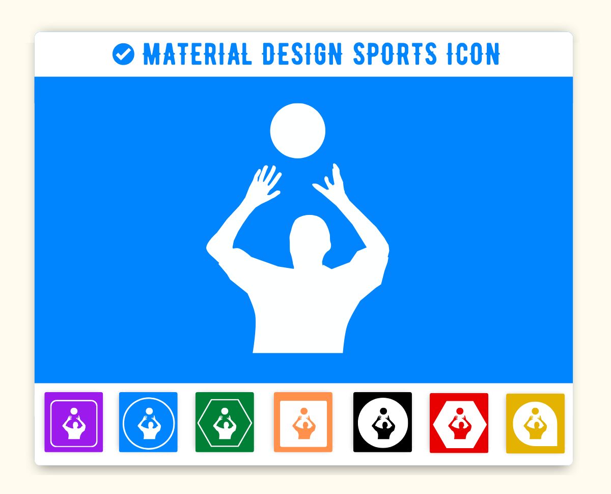 Sports Icon is given below. You can use this icon on the same way in your project. First make sure you have added Material Icon library. If this library is added just add the HTML css class sports to any element to add the icon. Material Design Sports Icon can be resized as per your need. You can manage size of icon(sports) by using font-size css style.