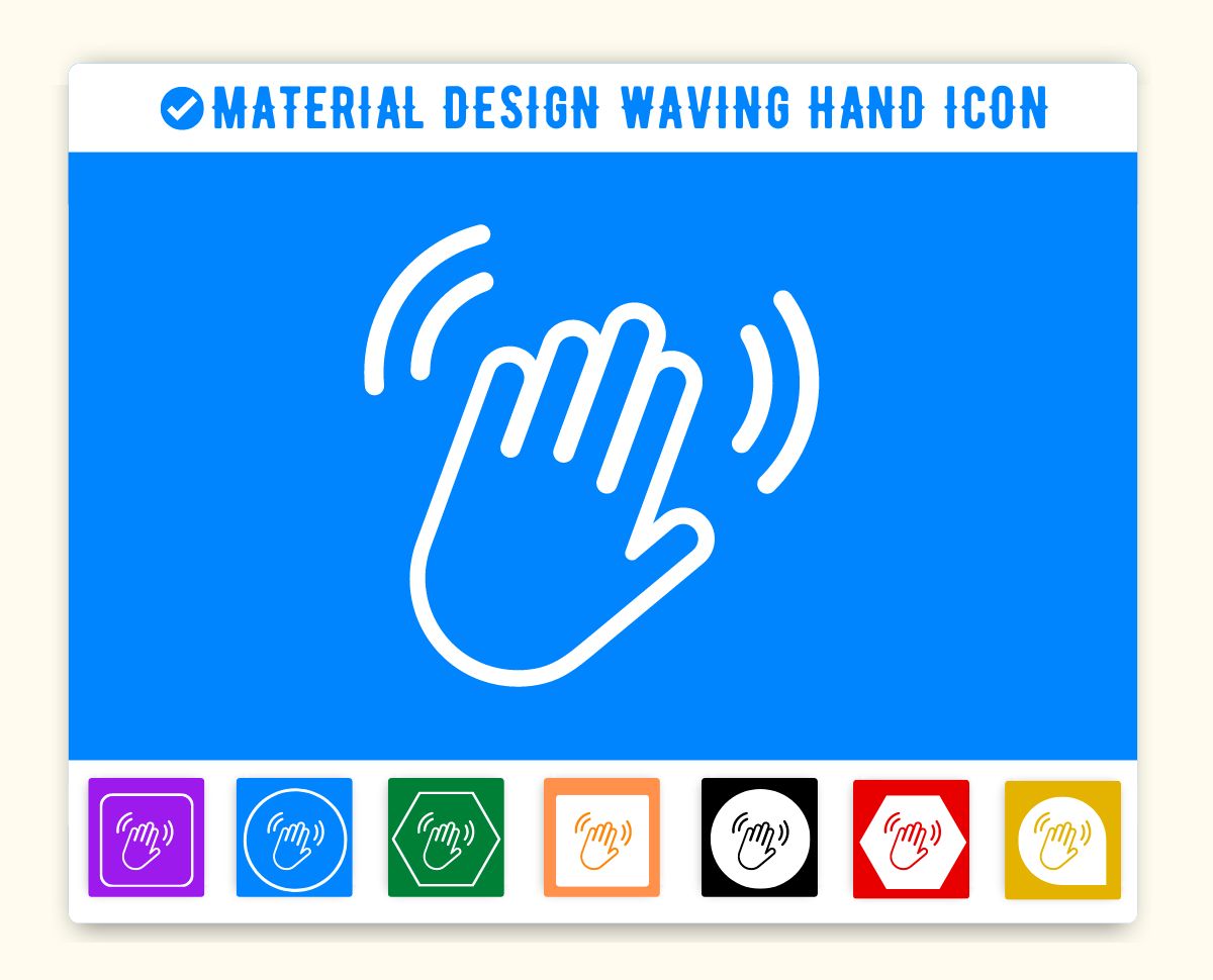 flapping,undulating,flourishing,greeting,rolling,brandishing,vibrating,Vuetify Waving Hand Icon (Vue Js), Material Ui Waving Hand Icon (React Js), Mat Icon Waving Hand (Angular Material)