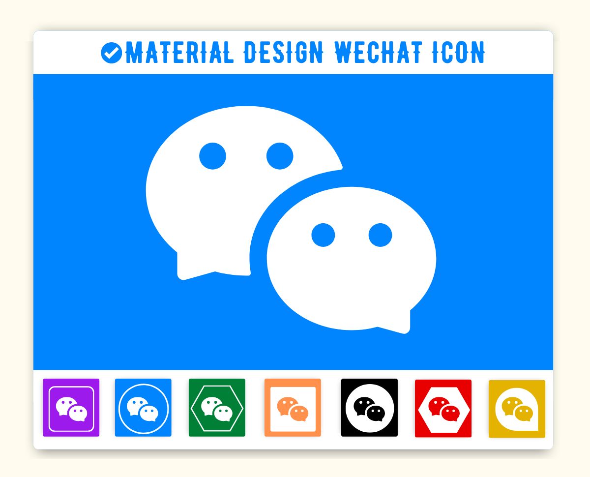 Wechat Icon is given below. You can use this icon on the same way in your project. First make sure you have added Material Icon library. If this library is added just add the HTML css class wechat to any element to add the icon. Material Design Wechat Icon can be resized as per your need. You can manage size of icon(wechat) by using font-size css style.