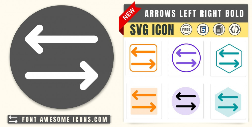You can get svg icon arrows left right bold in blue, white, red color and transparent color from below list. You can also customize color using color picker.