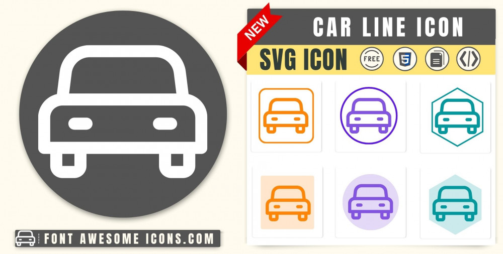 You can get svg icon car line in blue, white, red color and transparent color from below list. You can also customize color using color picker.