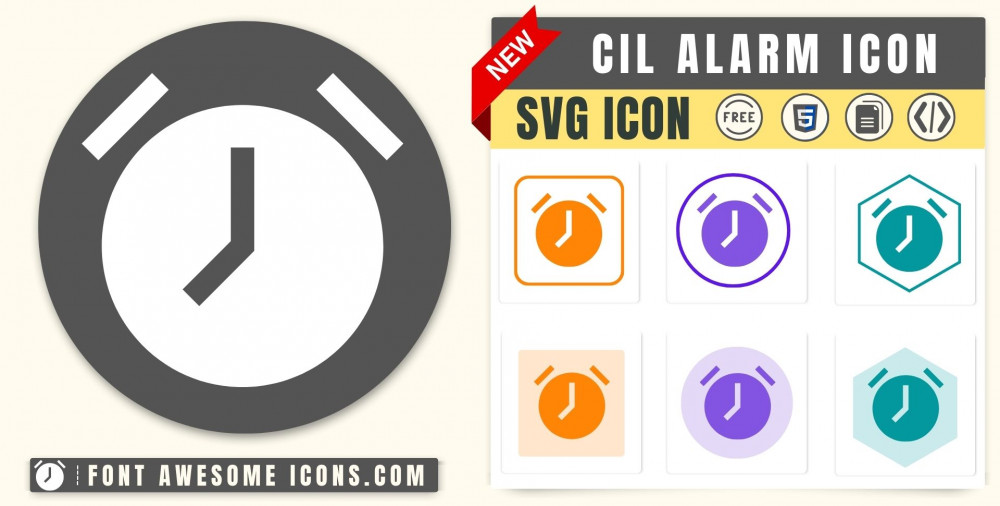 You can get svg icon cil alarm in blue, white, red color and transparent color from below list. You can also customize color using color picker.