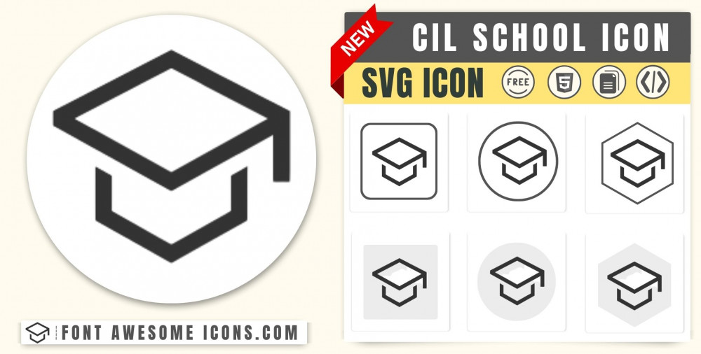 You can get svg icon cil school in blue, white, red color and transparent color from below list. You can also customize color using color picker.