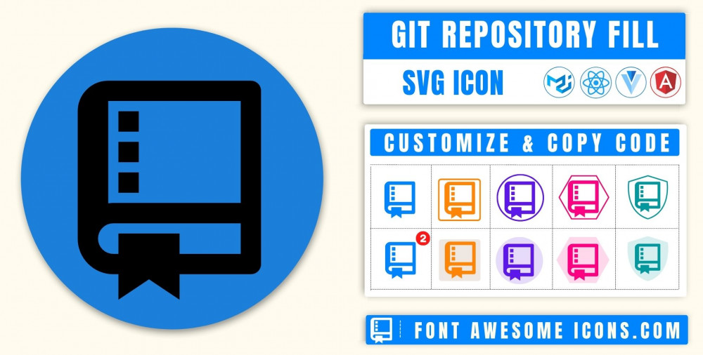 You can get svg icon git repository fill in blue, white, red color and transparent color from below list. You can also customize color using color picker.