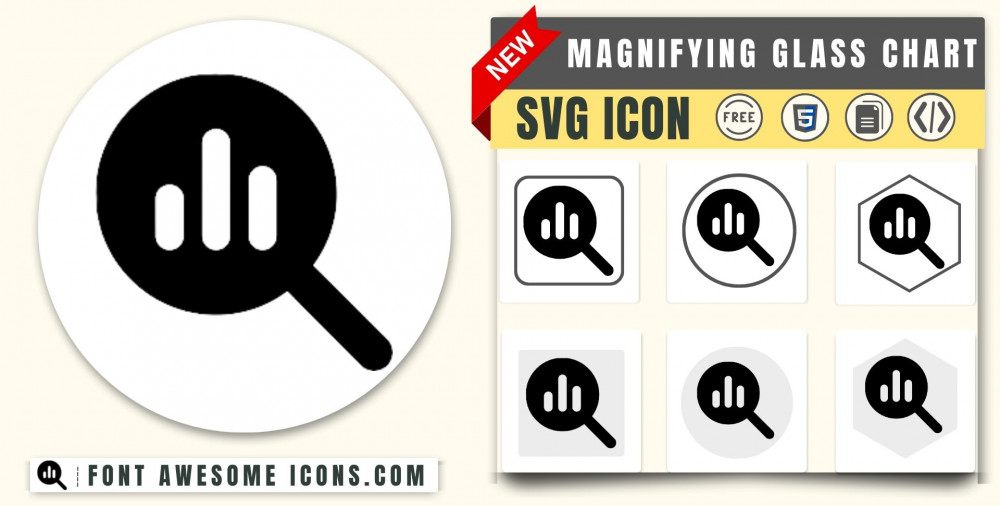 You can get svg icon magnifying glass chart in blue, white, red color and transparent color from below list. You can also customize color using color picker.
