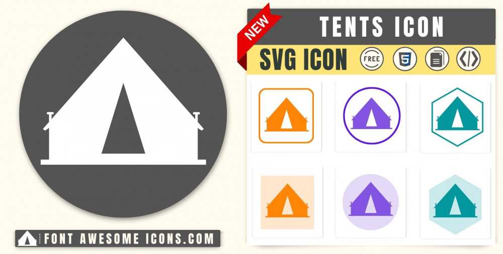 You can get svg icon tents in blue, white, red color and transparent color from below list. You can also customize color using color picker.